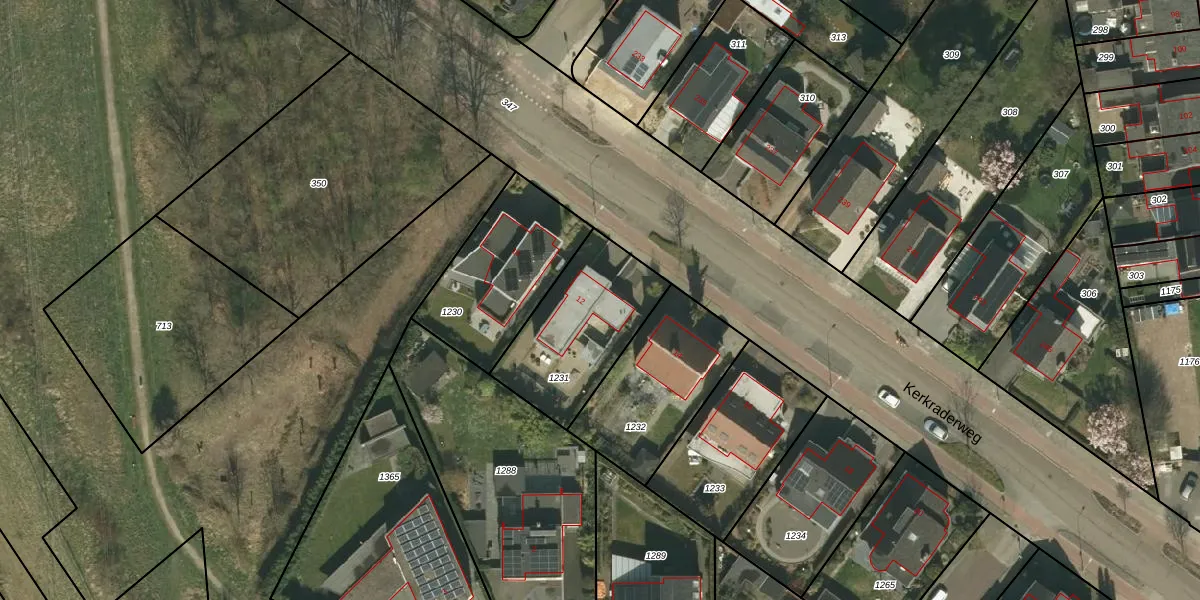 Kerkraderweg 12 is gelegen op kadastraal perceel LGF00B1231. Deze kadastrale aanduiding is uniek en wordt gebruikt door het Kadaster om eigendomsrechten en andere zakelijke rechten vast te leggen. Het perceel maakt onderdeel uit van de kadastrale gemeente Landgraaf.