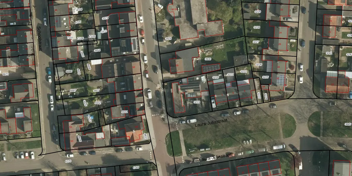 Gebruik de zoekbalk of klik op een perceel voor informatie over de adressen binnen dit perceel.