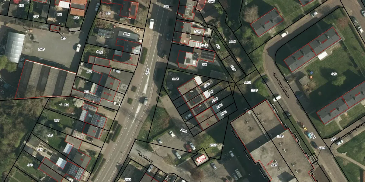 Gebruik de zoekbalk of klik op een perceel voor informatie over de adressen binnen dit perceel.