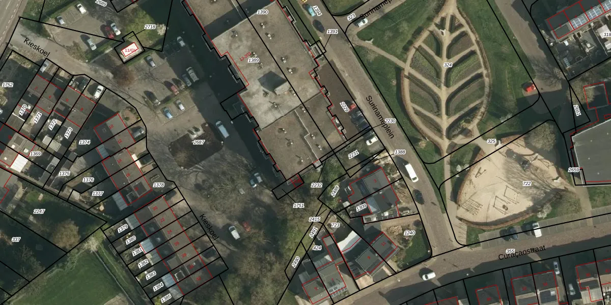 Het perceel waarop Kieskoel 117 staat heeft een oppervlakte van 1230 m². Dit is een zeer groot perceel. De perceeloppervlakte wordt geregistreerd door het Kadaster. Gedetailleerde informatie over de maten van dit perceel kunt u vinden in het rapport Kadastrale kaart met maatvoering van Kieskoel 117.