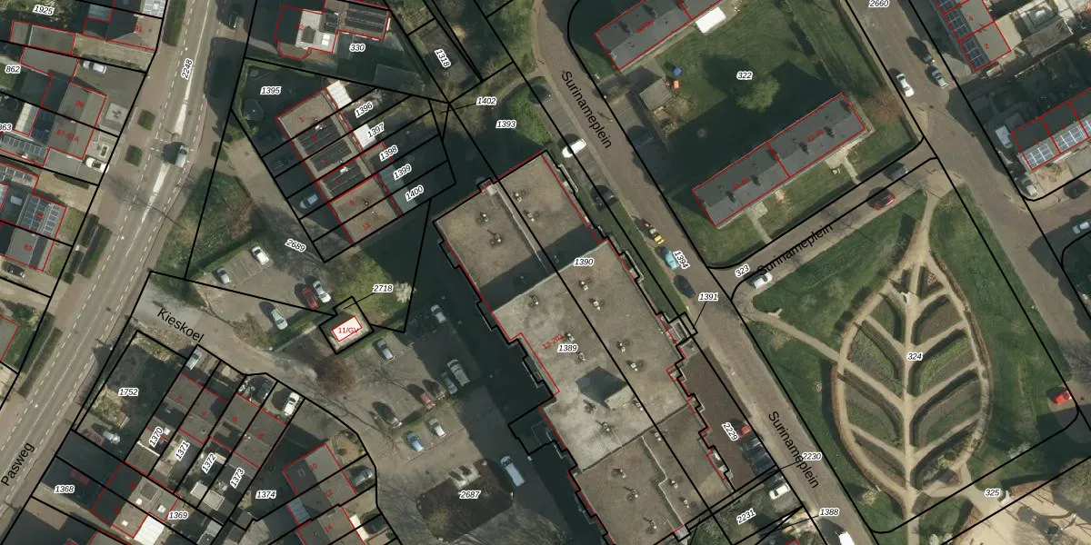 Het perceel waarop Kieskoel 143 staat heeft een oppervlakte van 1230 m². Dit is een zeer groot perceel. De perceeloppervlakte wordt geregistreerd door het Kadaster. Gedetailleerde informatie over de maten van dit perceel kunt u vinden in het rapport Kadastrale kaart met maatvoering van Kieskoel 143.