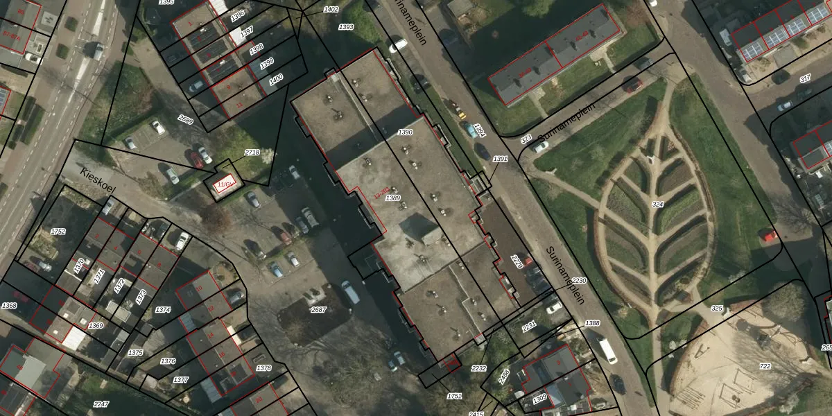Het perceel waarop Kieskoel 163 staat heeft een oppervlakte van 1230 m². Dit is een zeer groot perceel. De perceeloppervlakte wordt geregistreerd door het Kadaster. Gedetailleerde informatie over de maten van dit perceel kunt u vinden in het rapport Kadastrale kaart met maatvoering van Kieskoel 163.