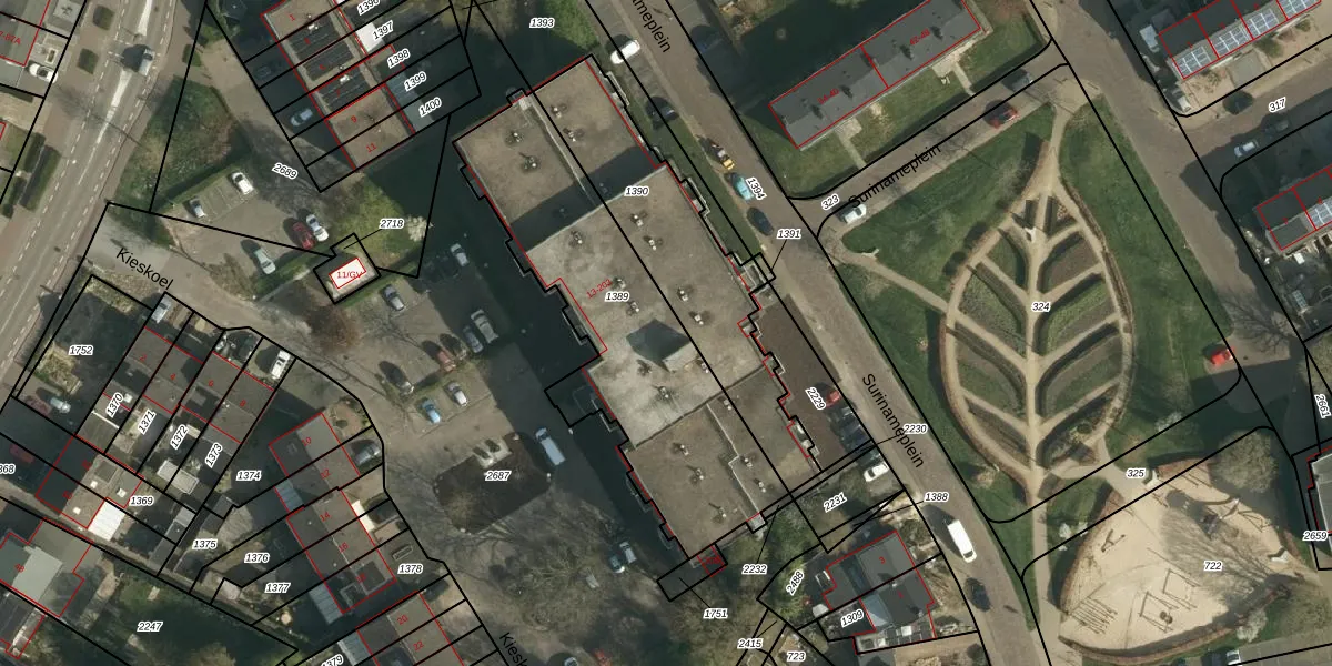 Het perceel waarop Kieskoel 167 staat heeft een oppervlakte van 1230 m². Dit is een zeer groot perceel. De perceeloppervlakte wordt geregistreerd door het Kadaster. Gedetailleerde informatie over de maten van dit perceel kunt u vinden in het rapport Kadastrale kaart met maatvoering van Kieskoel 167.