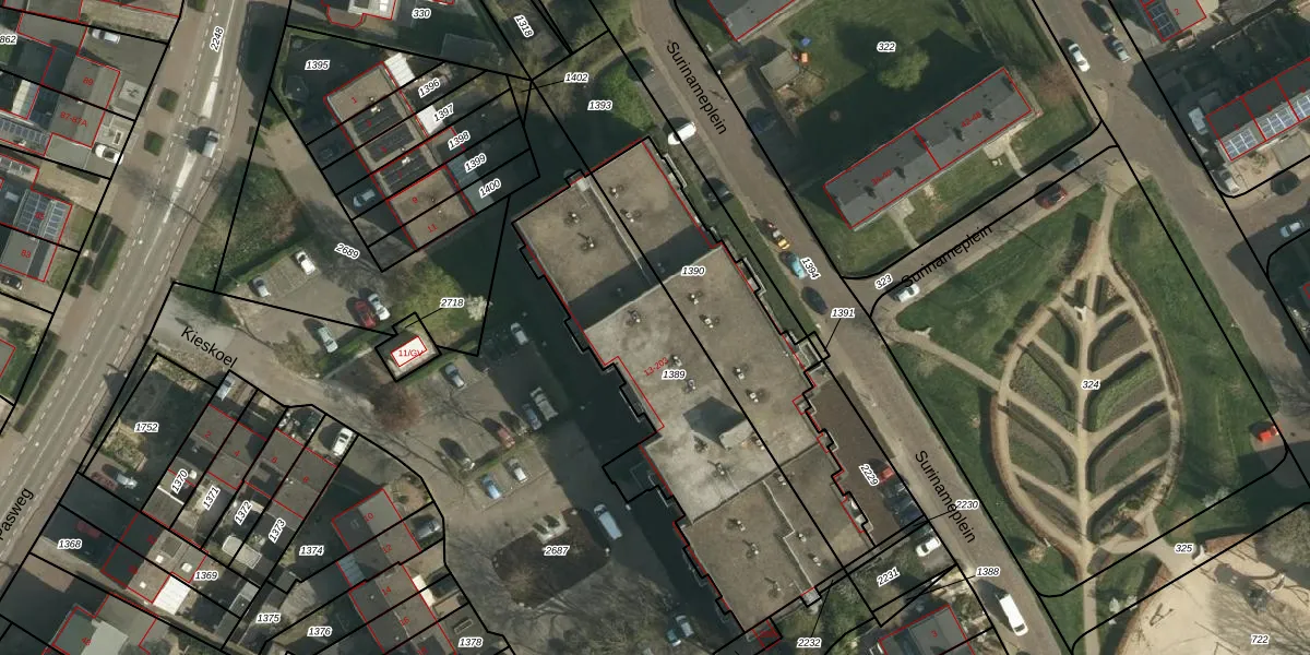 Het perceel waarop Kieskoel 49 staat heeft een oppervlakte van 1230 m². Dit is een zeer groot perceel. De perceeloppervlakte wordt geregistreerd door het Kadaster. Gedetailleerde informatie over de maten van dit perceel kunt u vinden in het rapport Kadastrale kaart met maatvoering van Kieskoel 49.