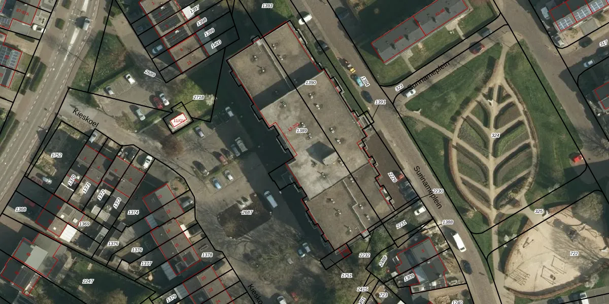 Het perceel waarop Kieskoel 67 staat heeft een oppervlakte van 1230 m². Dit is een zeer groot perceel. De perceeloppervlakte wordt geregistreerd door het Kadaster. Gedetailleerde informatie over de maten van dit perceel kunt u vinden in het rapport Kadastrale kaart met maatvoering van Kieskoel 67.