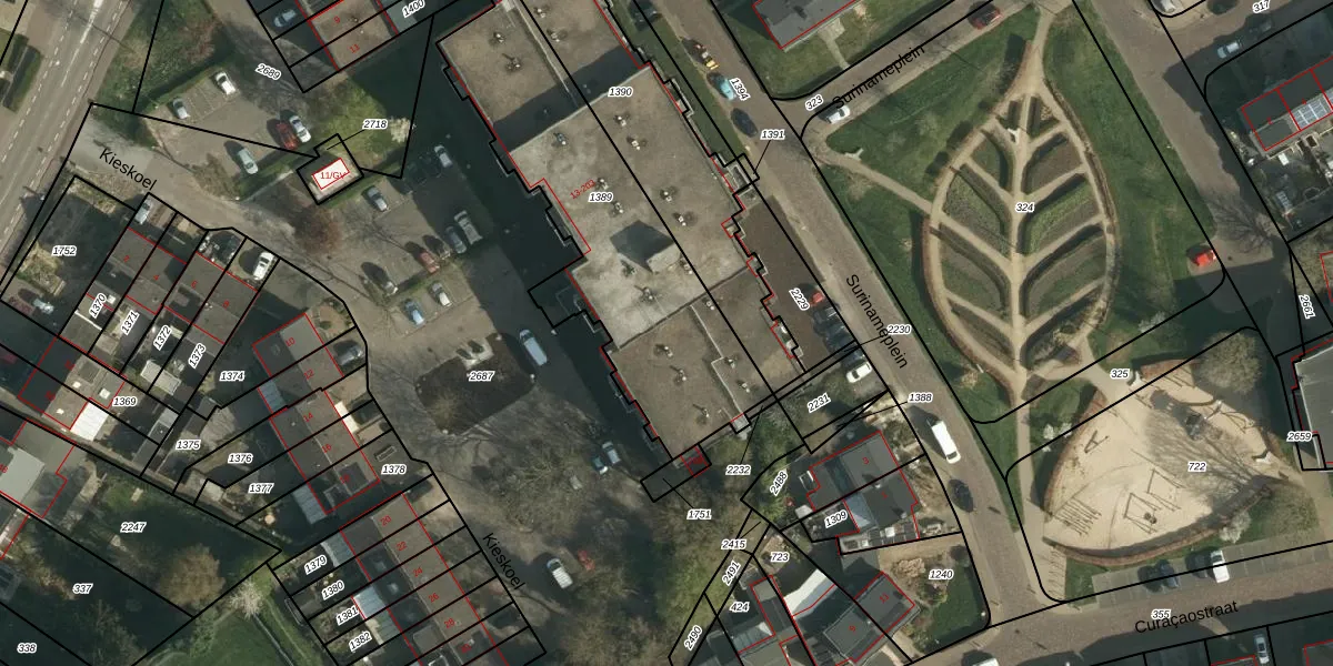 Het perceel waarop Kieskoel 97 staat heeft een oppervlakte van 1230 m². Dit is een zeer groot perceel. De perceeloppervlakte wordt geregistreerd door het Kadaster. Gedetailleerde informatie over de maten van dit perceel kunt u vinden in het rapport Kadastrale kaart met maatvoering van Kieskoel 97.