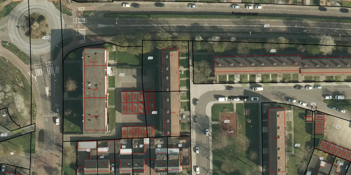Kochstraat 12 is gelegen op kadastraal perceel SBG01G103. Deze kadastrale aanduiding is uniek en wordt gebruikt door het Kadaster om eigendomsrechten en andere zakelijke rechten vast te leggen. Het perceel maakt onderdeel uit van de kadastrale gemeente Schaesberg.