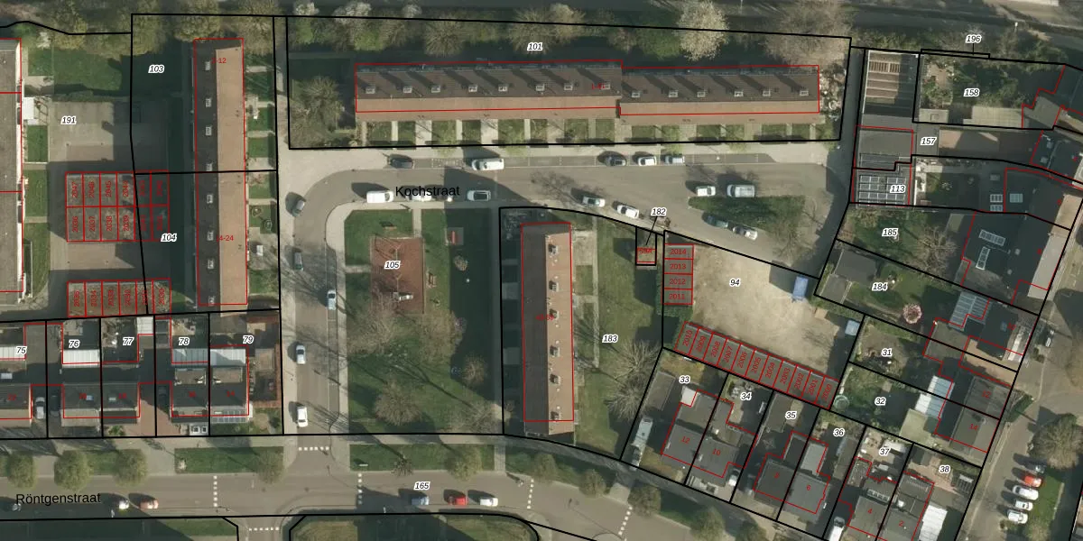 Het perceel waarop Kochstraat 49 staat heeft een oppervlakte van 1173 m². Dit is een zeer groot perceel. De perceeloppervlakte wordt geregistreerd door het Kadaster. Gedetailleerde informatie over de maten van dit perceel kunt u vinden in het rapport Kadastrale kaart met maatvoering van Kochstraat 49.
