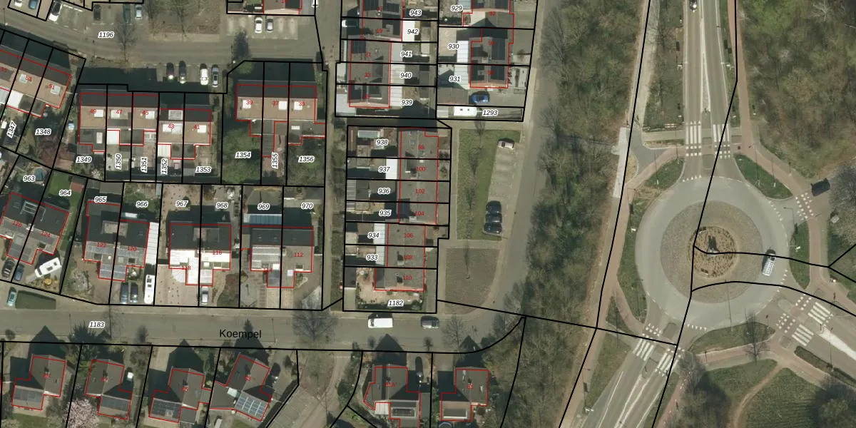 Het perceel waarop Koempel 104 staat heeft een oppervlakte van 123 m². Dit is een middelgroot perceel. De perceeloppervlakte wordt geregistreerd door het Kadaster. Gedetailleerde informatie over de maten van dit perceel kunt u vinden in het rapport Kadastrale kaart met maatvoering van Koempel 104.