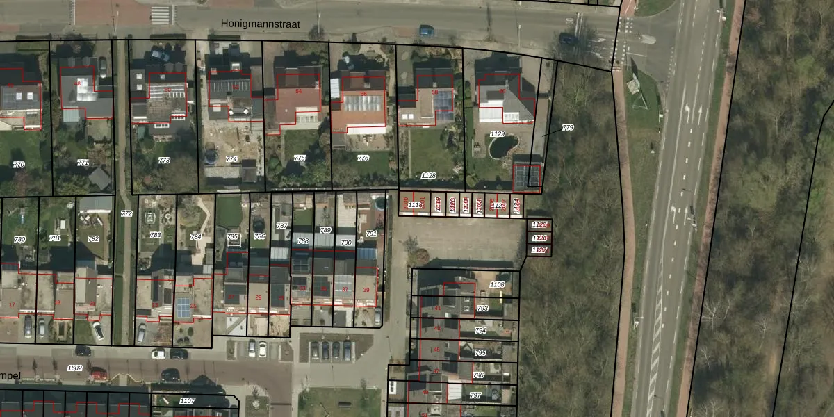 Het perceel waarop het adres ligt is LGF00-B-1118. De afkorting 'LGF00' staat voor kadastrale gemeente Landgraaf. Het perceel is 46 m² groot. Dat is kleiner dan de gemiddelde perceeloppervlakte in Landgraaf, dat op 1624,36 m² ligt. Het grootste perceel in de kadastrale gemeente is 41,0 ha. Het kleinste perceel heeft een oppervlakte van 0 m². Op het perceel liggen in totaal 2 adressen. De laatste wijziging in het de Basisregistratie Kadaster (BRK) was op 31-07-2007.