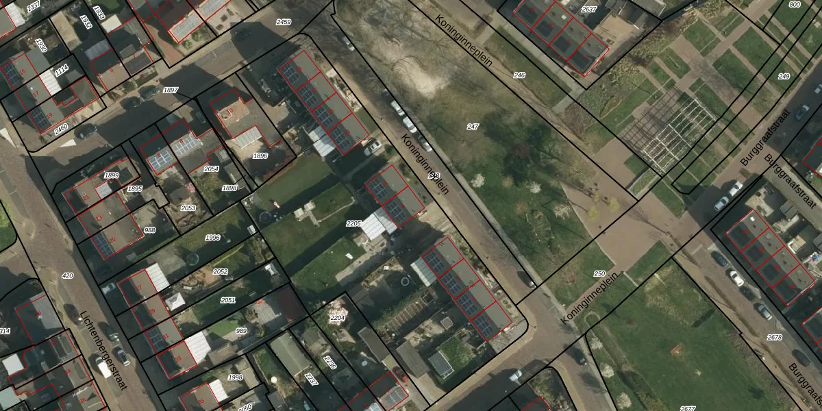 Koninginneplein 9 is gelegen op kadastraal perceel SBG01E2205. Deze kadastrale aanduiding is uniek en wordt gebruikt door het Kadaster om eigendomsrechten en andere zakelijke rechten vast te leggen. Het perceel maakt onderdeel uit van de kadastrale gemeente Schaesberg.
