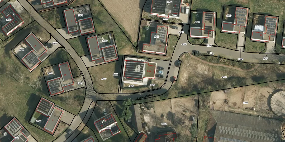 Larikslaan 5 is gelegen op kadastraal perceel NWH01A4025. Deze kadastrale aanduiding is uniek en wordt gebruikt door het Kadaster om eigendomsrechten en andere zakelijke rechten vast te leggen. Het perceel maakt onderdeel uit van de kadastrale gemeente Nieuwenhagen.