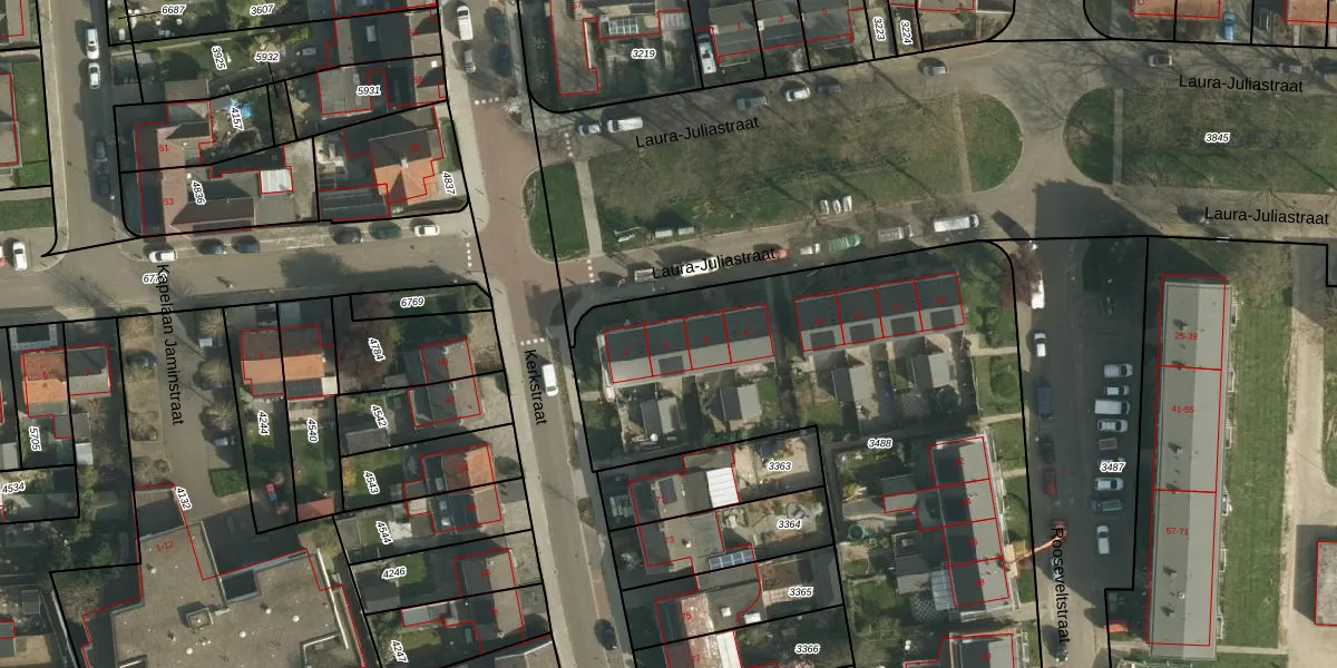 Laura-Juliastraat 4 is gelegen op kadastraal perceel UBH00B3488. Deze kadastrale aanduiding is uniek en wordt gebruikt door het Kadaster om eigendomsrechten en andere zakelijke rechten vast te leggen. Het perceel maakt onderdeel uit van de kadastrale gemeente Ubach over Worms.