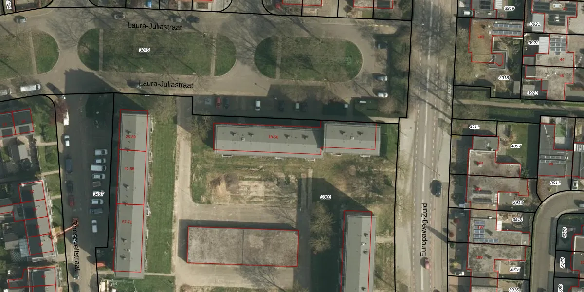 Laura-Juliastraat 44 is gelegen op kadastraal perceel UBH00B3880. Deze kadastrale aanduiding is uniek en wordt gebruikt door het Kadaster om eigendomsrechten en andere zakelijke rechten vast te leggen. Het perceel maakt onderdeel uit van de kadastrale gemeente Ubach over Worms.