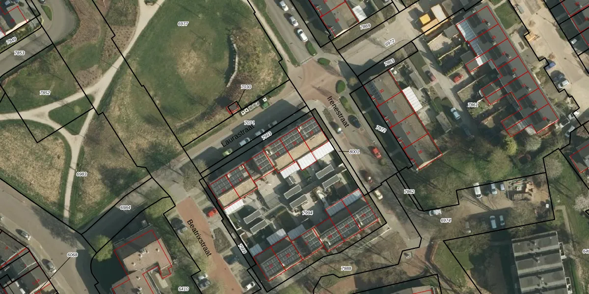 Het perceel waarop Laurastraat 18 staat heeft een oppervlakte van 1981 m². Dit is een zeer groot perceel. De perceeloppervlakte wordt geregistreerd door het Kadaster. Gedetailleerde informatie over de maten van dit perceel kunt u vinden in het rapport Kadastrale kaart met maatvoering van Laurastraat 18.