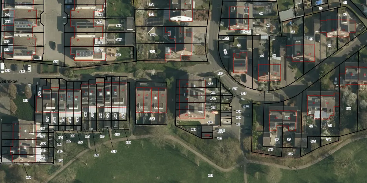 Gebruik de zoekbalk of klik op een perceel voor informatie over de adressen binnen dit perceel.