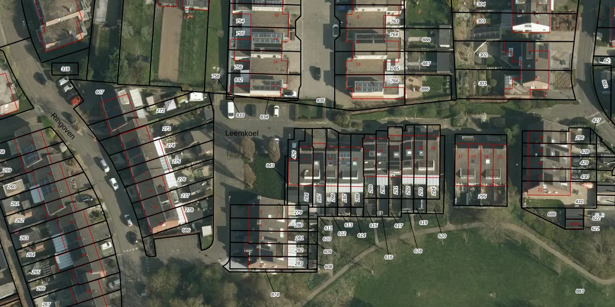 Gebruik de zoekbalk of klik op een perceel voor informatie over de adressen binnen dit perceel.