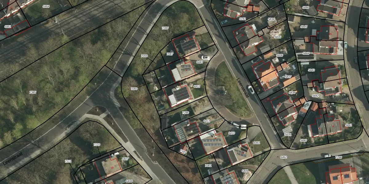Leenstraat 5 is gelegen op kadastraal perceel SBG01B6412. Deze kadastrale aanduiding is uniek en wordt gebruikt door het Kadaster om eigendomsrechten en andere zakelijke rechten vast te leggen. Het perceel maakt onderdeel uit van de kadastrale gemeente Schaesberg.