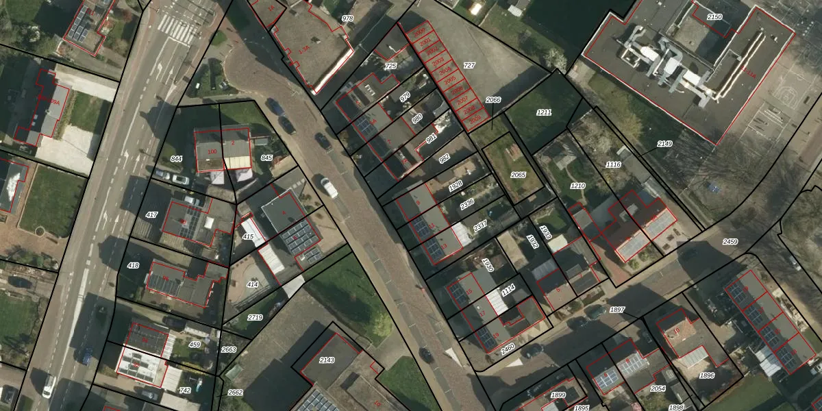 Gebruik de zoekbalk of klik op een perceel voor informatie over de adressen binnen dit perceel.