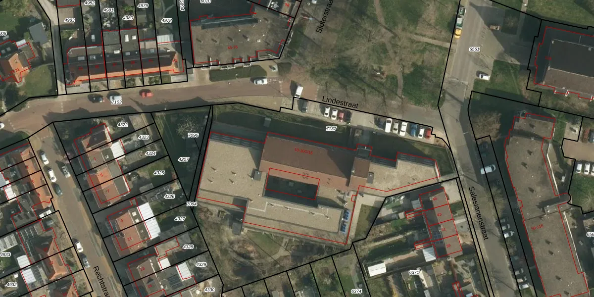 Het perceel waarop Lindestraat 10 staat heeft een oppervlakte van 3695 m². Dit is een zeer groot perceel. De perceeloppervlakte wordt geregistreerd door het Kadaster. Gedetailleerde informatie over de maten van dit perceel kunt u vinden in het rapport Kadastrale kaart met maatvoering van Lindestraat 10.