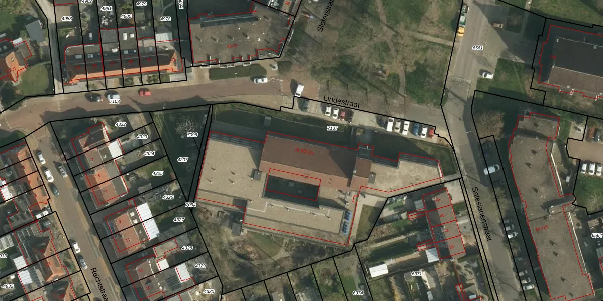 Het perceel waarop Lindestraat 10-A-11 staat heeft een oppervlakte van 3695 m². Dit is een zeer groot perceel. De perceeloppervlakte wordt geregistreerd door het Kadaster. Gedetailleerde informatie over de maten van dit perceel kunt u vinden in het rapport Kadastrale kaart met maatvoering van Lindestraat 10-A-11.