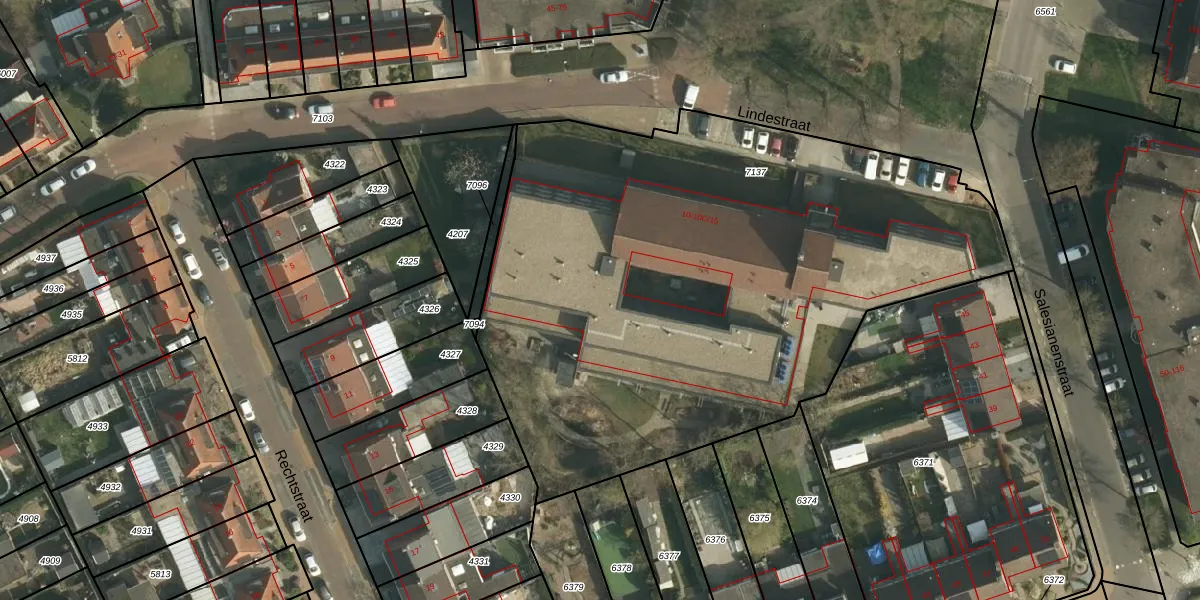Het perceel waarop Lindestraat 10-B-14 staat heeft een oppervlakte van 3695 m². Dit is een zeer groot perceel. De perceeloppervlakte wordt geregistreerd door het Kadaster. Gedetailleerde informatie over de maten van dit perceel kunt u vinden in het rapport Kadastrale kaart met maatvoering van Lindestraat 10-B-14.