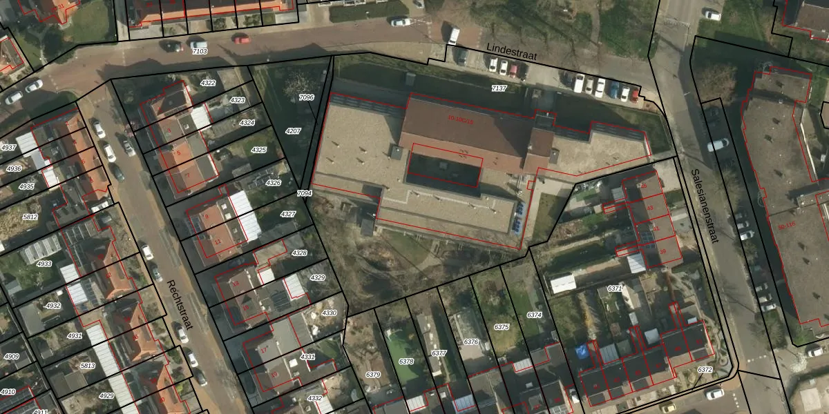 Het perceel waarop Lindestraat 10-B-20 staat heeft een oppervlakte van 3695 m². Dit is een zeer groot perceel. De perceeloppervlakte wordt geregistreerd door het Kadaster. Gedetailleerde informatie over de maten van dit perceel kunt u vinden in het rapport Kadastrale kaart met maatvoering van Lindestraat 10-B-20.