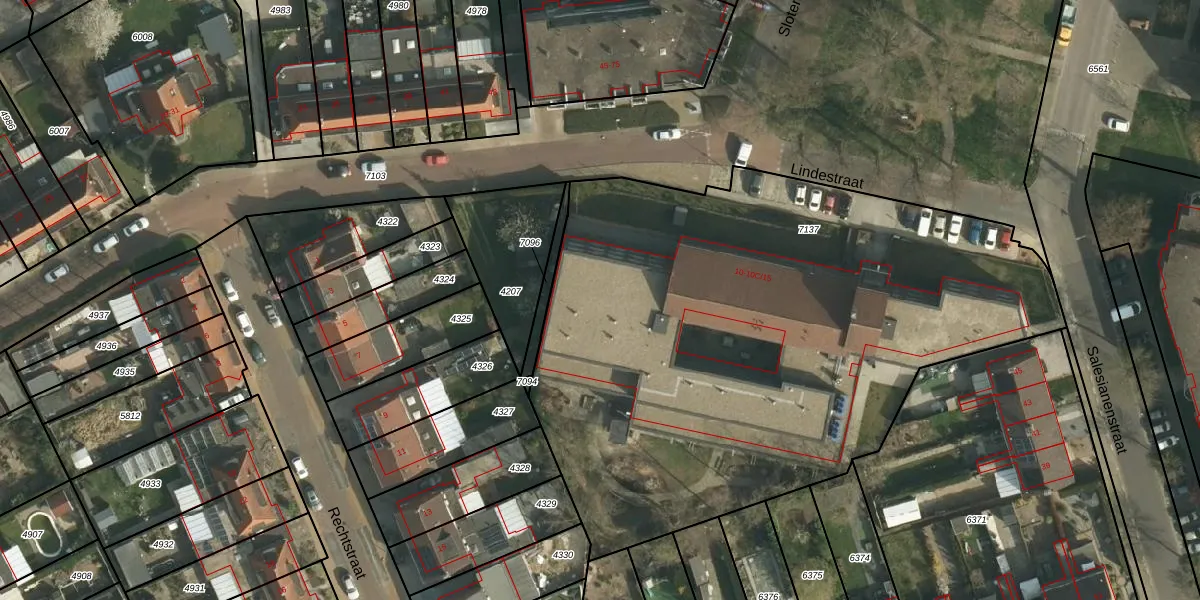 Het perceel waarop Lindestraat 10-C-3 staat heeft een oppervlakte van 3695 m². Dit is een zeer groot perceel. De perceeloppervlakte wordt geregistreerd door het Kadaster. Gedetailleerde informatie over de maten van dit perceel kunt u vinden in het rapport Kadastrale kaart met maatvoering van Lindestraat 10-C-3.