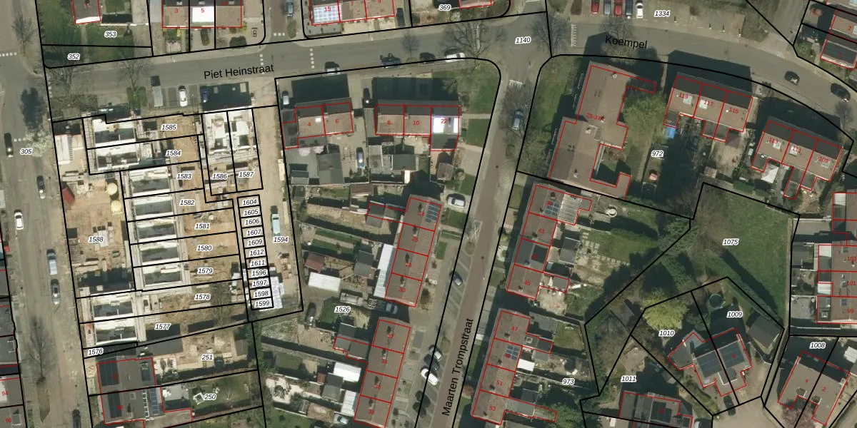 Het perceel waarop Maarten Trompstraat 24 staat heeft een oppervlakte van 4132 m². Dit is een zeer groot perceel. De perceeloppervlakte wordt geregistreerd door het Kadaster. Gedetailleerde informatie over de maten van dit perceel kunt u vinden in het rapport Kadastrale kaart met maatvoering van Maarten Trompstraat 24.