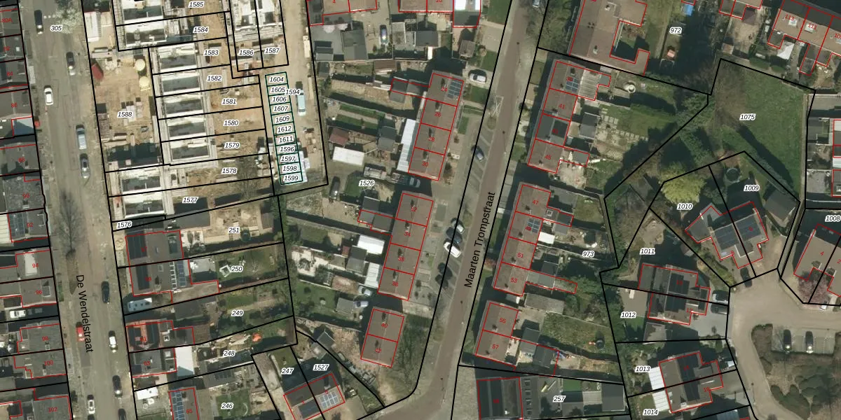 Het perceel waarop Maarten Trompstraat 32 staat heeft een oppervlakte van 4132 m². Dit is een zeer groot perceel. De perceeloppervlakte wordt geregistreerd door het Kadaster. Gedetailleerde informatie over de maten van dit perceel kunt u vinden in het rapport Kadastrale kaart met maatvoering van Maarten Trompstraat 32.