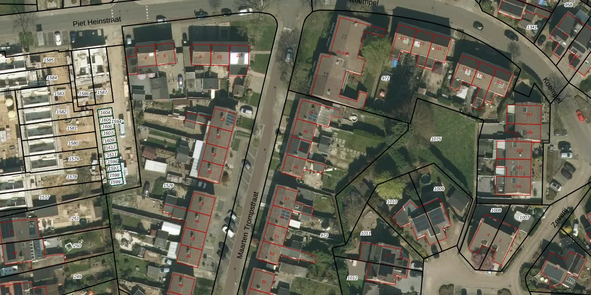 Maarten Trompstraat 43 is gelegen op kadastraal perceel LGF00B973. Deze kadastrale aanduiding is uniek en wordt gebruikt door het Kadaster om eigendomsrechten en andere zakelijke rechten vast te leggen. Het perceel maakt onderdeel uit van de kadastrale gemeente Landgraaf.
