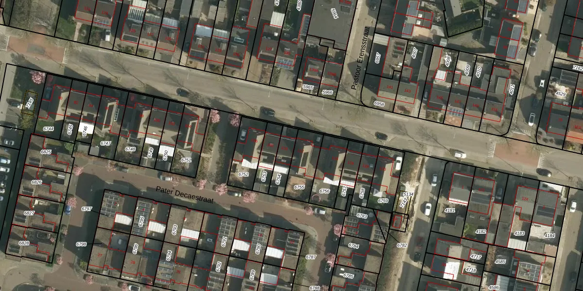 Gebruik de zoekbalk of klik op een perceel voor informatie over de adressen binnen dit perceel.