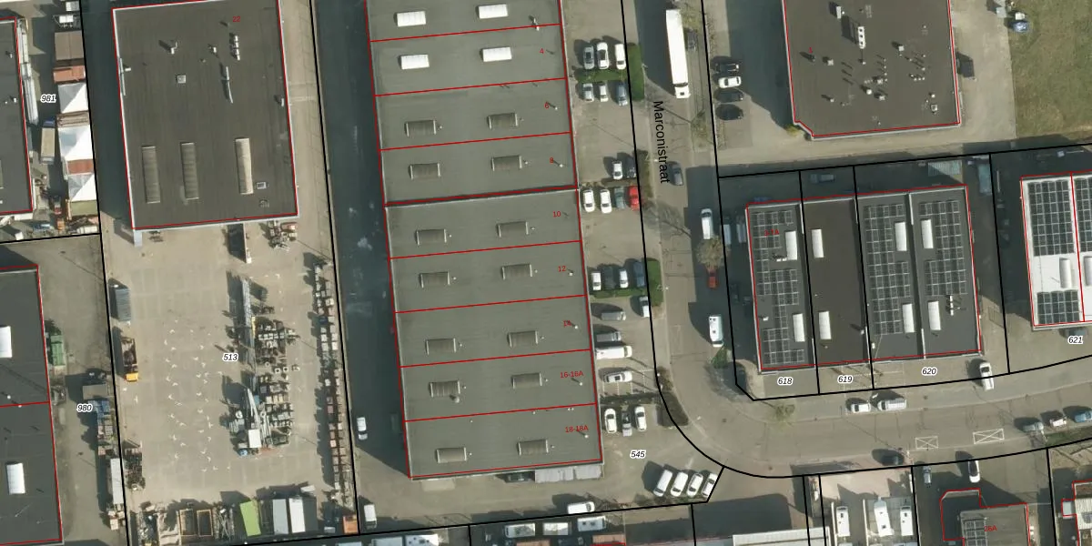 Het perceel waarop Marconistraat 12 staat heeft een oppervlakte van 6160 m². Dit is een zeer groot perceel. De perceeloppervlakte wordt geregistreerd door het Kadaster. Gedetailleerde informatie over de maten van dit perceel kunt u vinden in het rapport Kadastrale kaart met maatvoering van Marconistraat 12.
