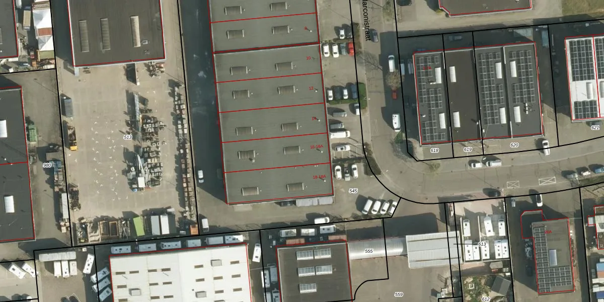 Het perceel waarop Marconistraat 16 staat heeft een oppervlakte van 6160 m². Dit is een zeer groot perceel. De perceeloppervlakte wordt geregistreerd door het Kadaster. Gedetailleerde informatie over de maten van dit perceel kunt u vinden in het rapport Kadastrale kaart met maatvoering van Marconistraat 16.