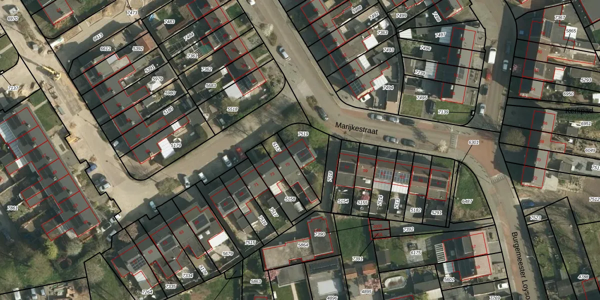 Gebruik de zoekbalk of klik op een perceel voor informatie over de adressen binnen dit perceel.
