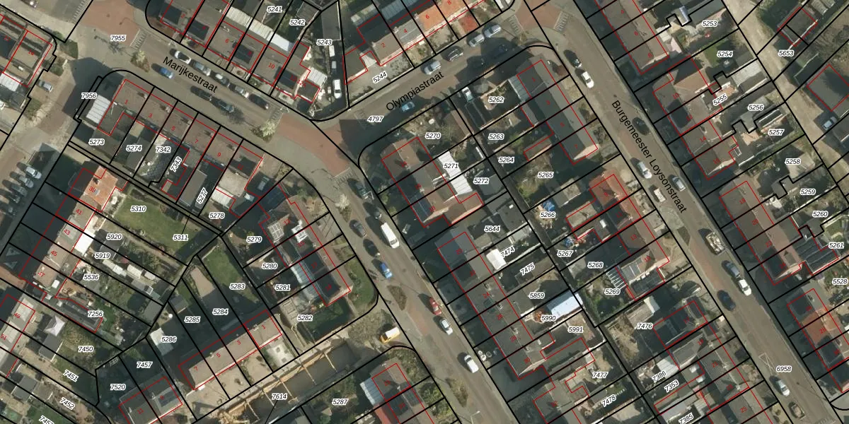 Gebruik de zoekbalk of klik op een perceel voor informatie over de adressen binnen dit perceel.
