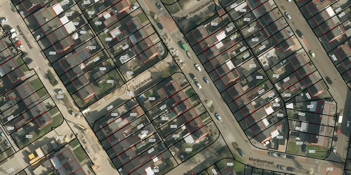 Het perceel waarop Marijkestraat 45 staat heeft een oppervlakte van 292 m². Dit is een middelgroot perceel. De perceeloppervlakte wordt geregistreerd door het Kadaster. Gedetailleerde informatie over de maten van dit perceel kunt u vinden in het rapport Kadastrale kaart met maatvoering van Marijkestraat 45.