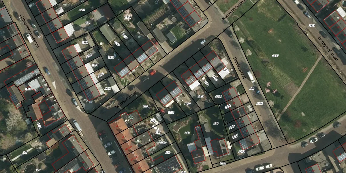 Het perceel waarop Markiesstraat 8 staat heeft een oppervlakte van 245 m². Dit is een middelgroot perceel. De perceeloppervlakte wordt geregistreerd door het Kadaster. Gedetailleerde informatie over de maten van dit perceel kunt u vinden in het rapport Kadastrale kaart met maatvoering van Markiesstraat 8.