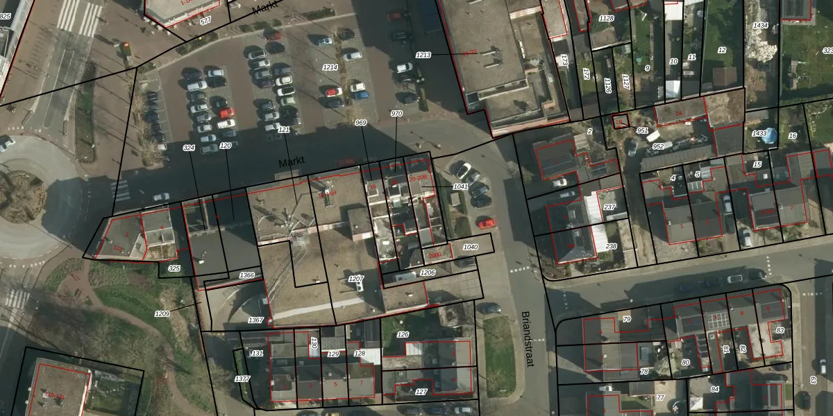 Het perceel waarop Markt 20-B staat heeft een oppervlakte van 148 m². Dit is een middelgroot perceel. De perceeloppervlakte wordt geregistreerd door het Kadaster. Gedetailleerde informatie over de maten van dit perceel kunt u vinden in het rapport Kadastrale kaart met maatvoering van Markt 20-B.