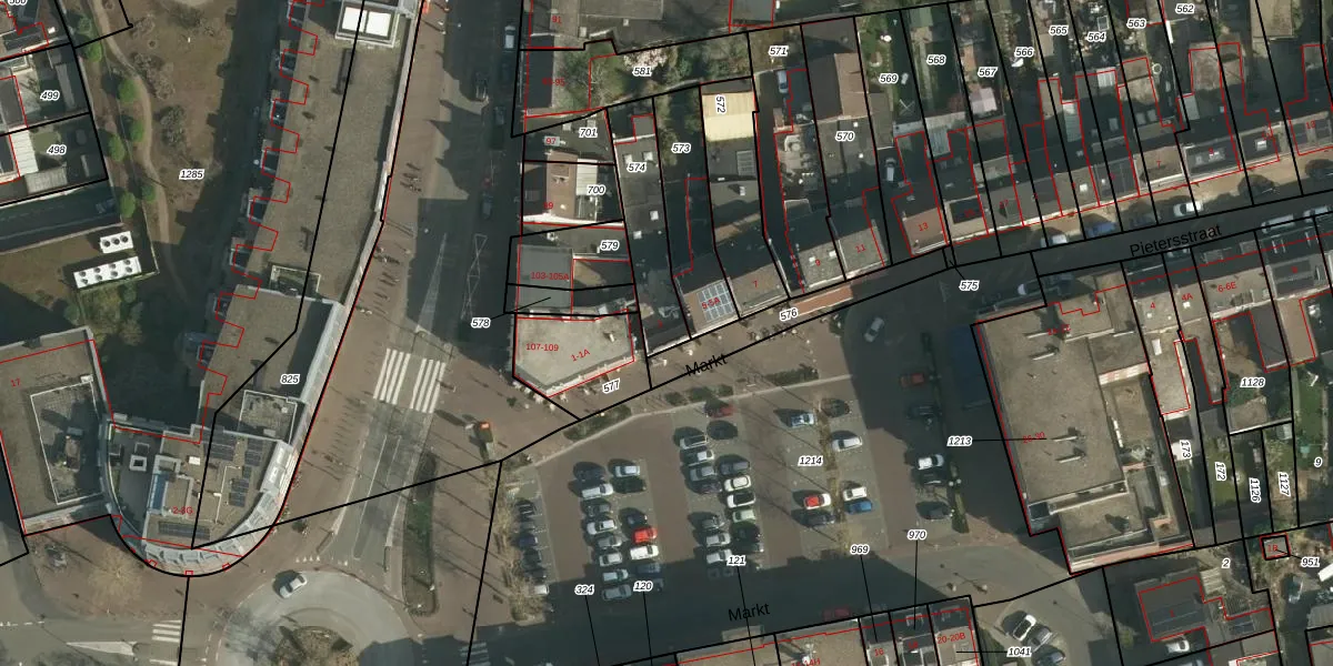 Het perceel waarop Markt 3 staat heeft een oppervlakte van 253 m². Dit is een middelgroot perceel. De perceeloppervlakte wordt geregistreerd door het Kadaster. Gedetailleerde informatie over de maten van dit perceel kunt u vinden in het rapport Kadastrale kaart met maatvoering van Markt 3.