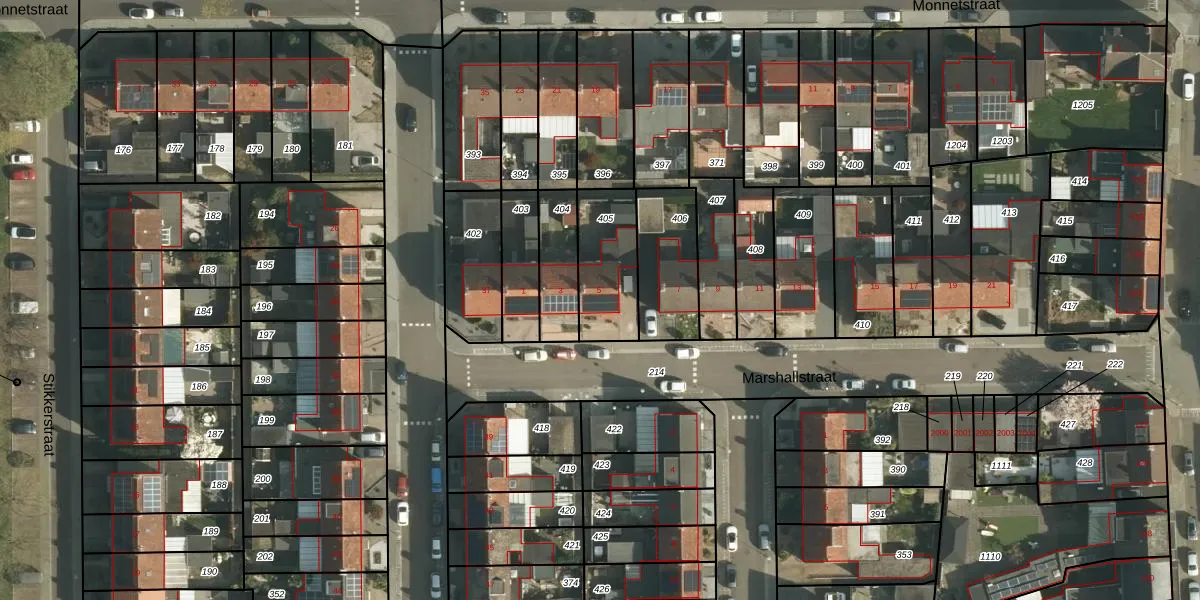 Gebruik de zoekbalk of klik op een perceel voor informatie over de adressen binnen dit perceel.