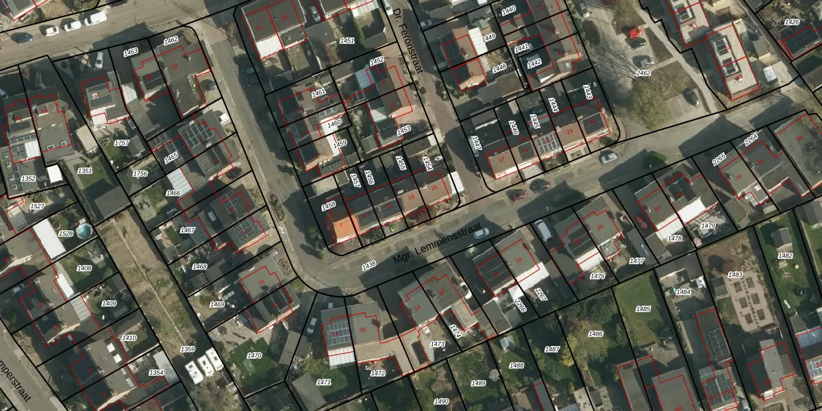 Mgr. Lemmensstraat 13 is gelegen op kadastraal perceel SBG01E1455. Deze kadastrale aanduiding is uniek en wordt gebruikt door het Kadaster om eigendomsrechten en andere zakelijke rechten vast te leggen. Het perceel maakt onderdeel uit van de kadastrale gemeente Schaesberg.