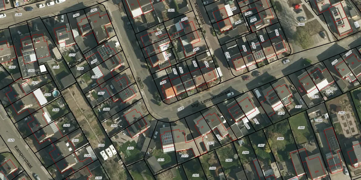 Het perceel waarop Mgr. Lemmensstraat 9 staat heeft een oppervlakte van 116 m². Dit is een middelgroot perceel. De perceeloppervlakte wordt geregistreerd door het Kadaster. Gedetailleerde informatie over de maten van dit perceel kunt u vinden in het rapport Kadastrale kaart met maatvoering van Mgr. Lemmensstraat 9.