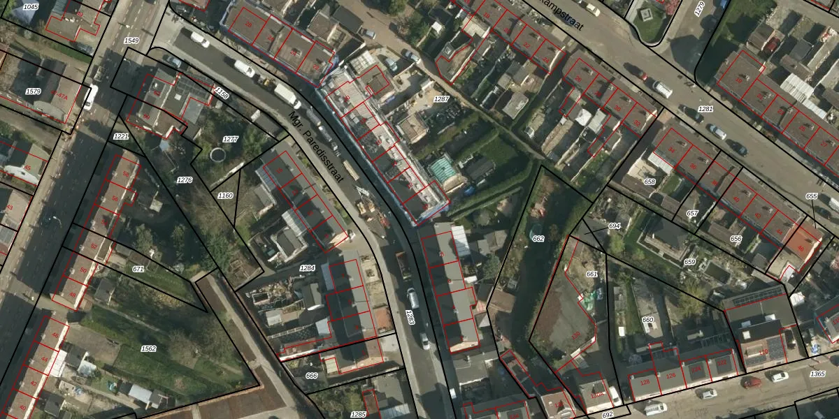 Mgr. Paredisstraat 10 is gelegen op kadastraal perceel NWH01C1287. Deze kadastrale aanduiding is uniek en wordt gebruikt door het Kadaster om eigendomsrechten en andere zakelijke rechten vast te leggen. Het perceel maakt onderdeel uit van de kadastrale gemeente Nieuwenhagen.