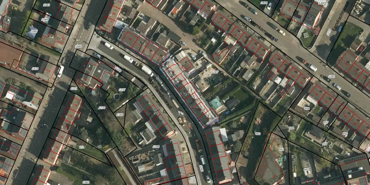 Het perceel waarop Mgr. Paredisstraat 16 staat heeft een oppervlakte van 6700 m². Dit is een zeer groot perceel. De perceeloppervlakte wordt geregistreerd door het Kadaster. Gedetailleerde informatie over de maten van dit perceel kunt u vinden in het rapport Kadastrale kaart met maatvoering van Mgr. Paredisstraat 16.