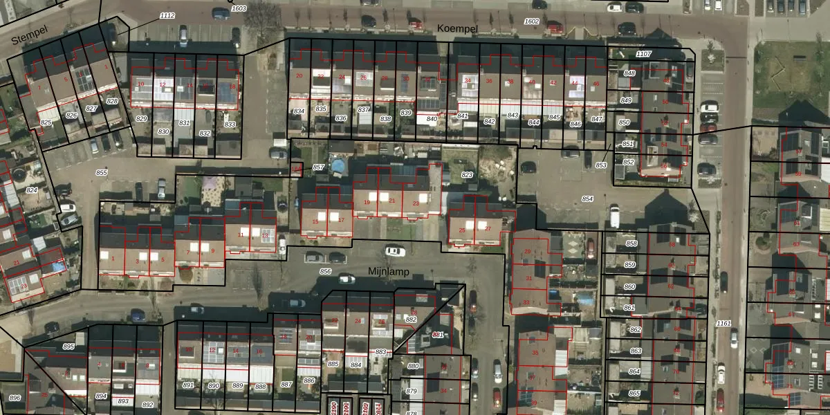 Het perceel waarop Mijnlamp 23 staat heeft een oppervlakte van 3940 m². Dit is een zeer groot perceel. De perceeloppervlakte wordt geregistreerd door het Kadaster. Gedetailleerde informatie over de maten van dit perceel kunt u vinden in het rapport Kadastrale kaart met maatvoering van Mijnlamp 23.