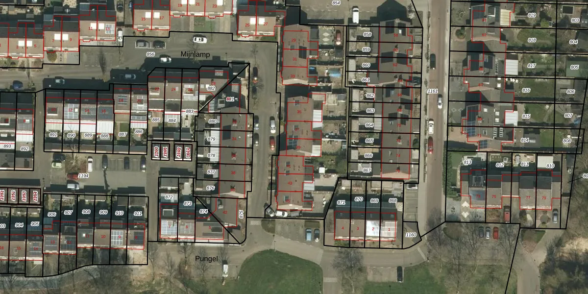 Het perceel waarop Mijnlamp 39 staat heeft een oppervlakte van 3940 m². Dit is een zeer groot perceel. De perceeloppervlakte wordt geregistreerd door het Kadaster. Gedetailleerde informatie over de maten van dit perceel kunt u vinden in het rapport Kadastrale kaart met maatvoering van Mijnlamp 39.