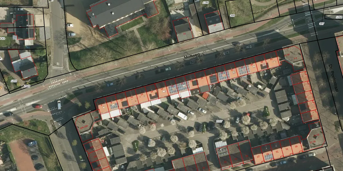 Moltweg 20 is gelegen op kadastraal perceel SBG01E2317. Deze kadastrale aanduiding is uniek en wordt gebruikt door het Kadaster om eigendomsrechten en andere zakelijke rechten vast te leggen. Het perceel maakt onderdeel uit van de kadastrale gemeente Schaesberg.
