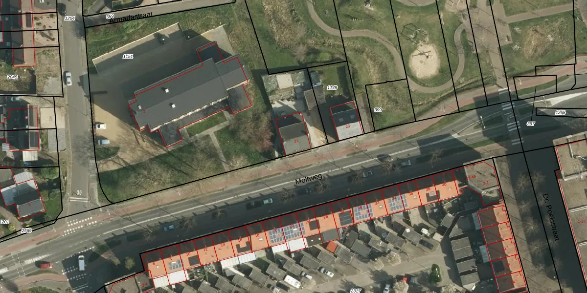 Moltweg 21 is gelegen op kadastraal perceel SBG01E1151. Deze kadastrale aanduiding is uniek en wordt gebruikt door het Kadaster om eigendomsrechten en andere zakelijke rechten vast te leggen. Het perceel maakt onderdeel uit van de kadastrale gemeente Schaesberg.
