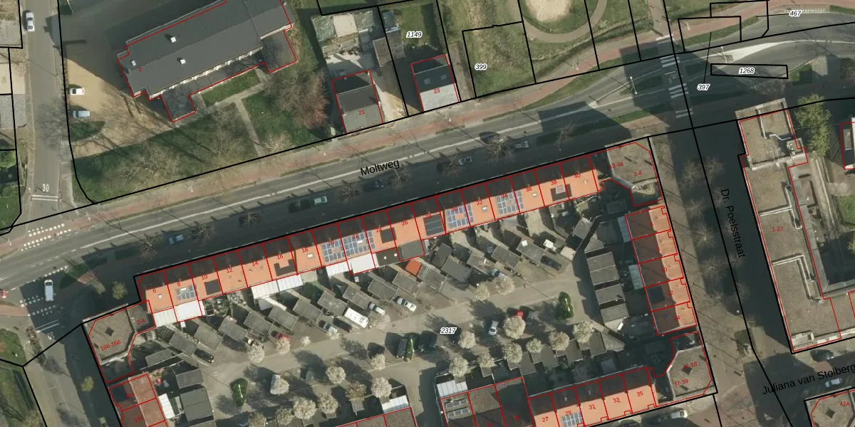 Moltweg 28 is gelegen op kadastraal perceel SBG01E2317. Deze kadastrale aanduiding is uniek en wordt gebruikt door het Kadaster om eigendomsrechten en andere zakelijke rechten vast te leggen. Het perceel maakt onderdeel uit van de kadastrale gemeente Schaesberg.